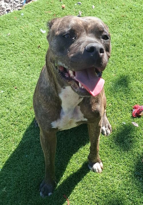 Born December 3rd, 2024, Biscuit is a brindle and white Staffy cross. He’s come a long way with his behaviour and is now a charming, well-mannered young dog. His good looks and sweet nature make him a real heart-stealer.